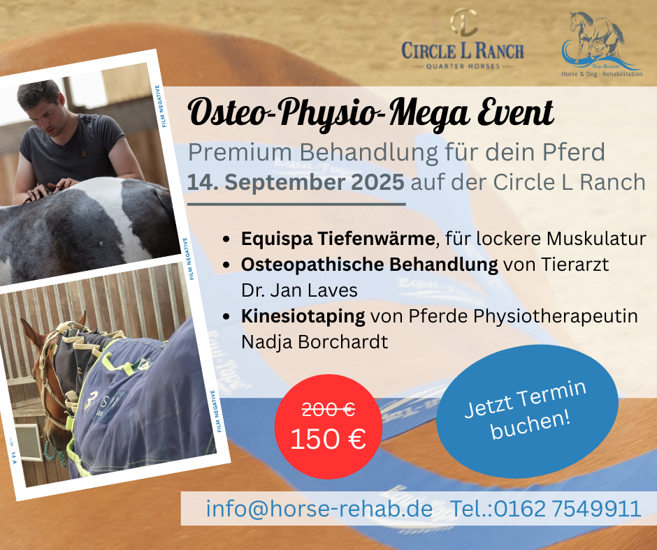 Im Humanbereich ist Physiotherapie im Profisport allgegenwärtig, auch unsere Tiere können vor dem Wettkampf und anschließend in der Regeneration unterstützt werden. Zum Beispiel durch manuelle Therapie oder einer EQUISPA-Anwendung.